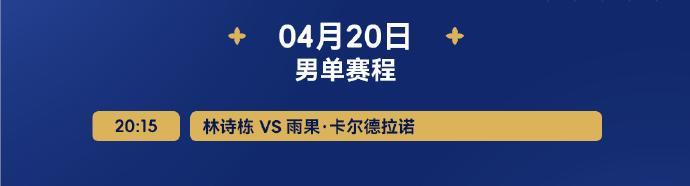 在男单决赛中,20:15林诗栋将对战雨果·卡尔德拉诺。